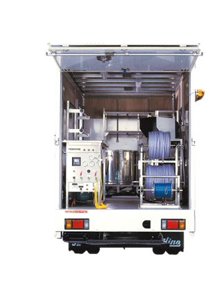 下水道管路の破損や劣化部を補修する際に使用する機材を搭載した車です。